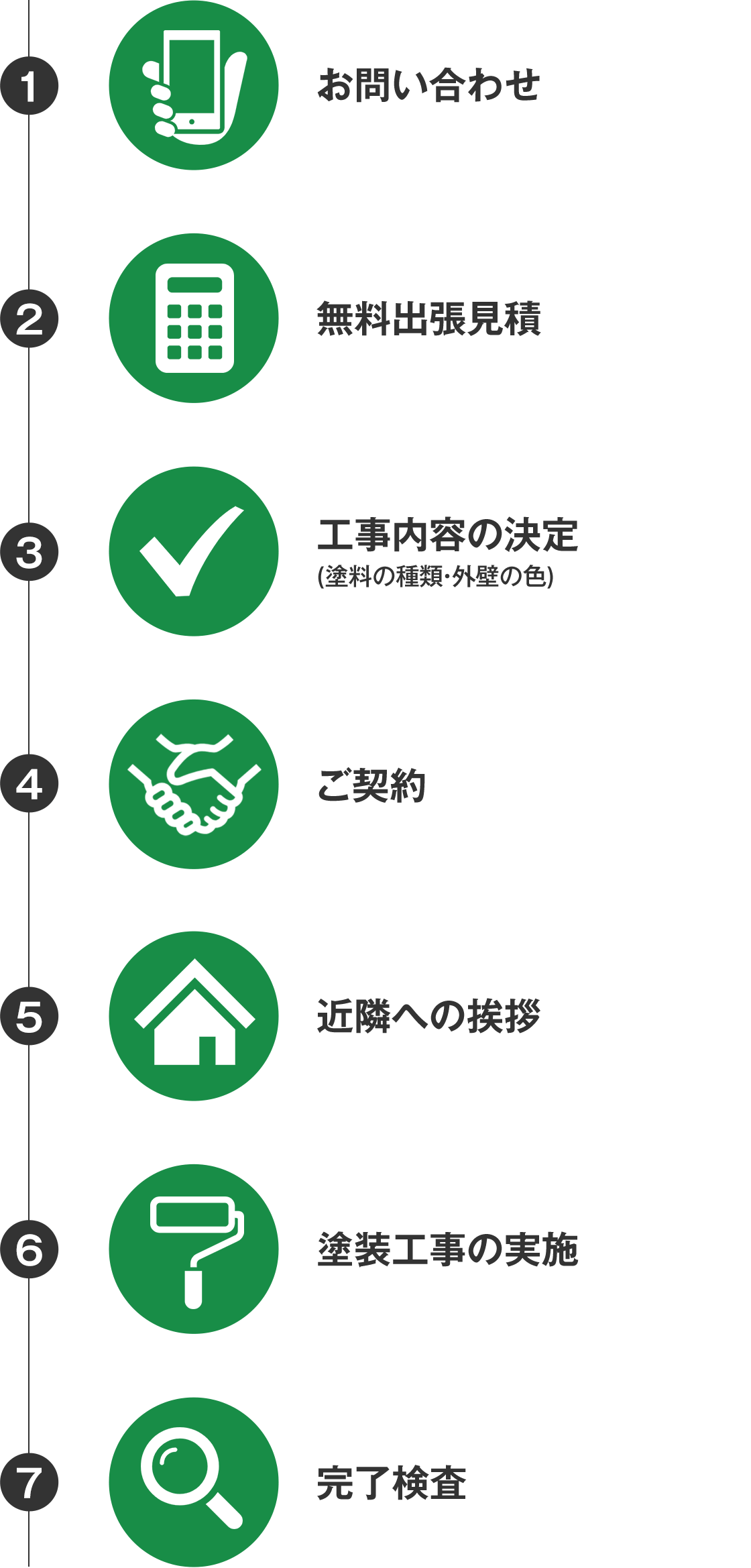 外壁塗装中は騒音や塗料の臭いが発生し、近隣の方にご迷惑をおかけすることがあります。そのため、当社では塗装工事着工前に、ご近所様に塗装工事開始の挨拶と、工程のご説明をさせていただいております。